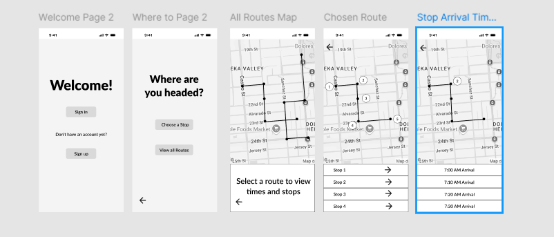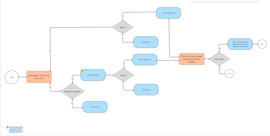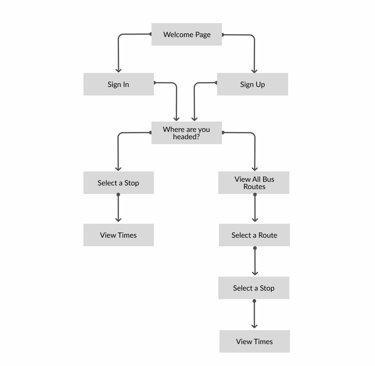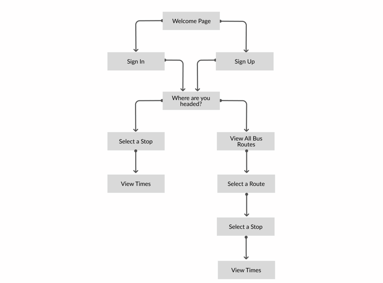 Before sketching or wireframes, I sat down to map out how users would need to navigate through the app to reach their desired goal of locating their bus routes and times.