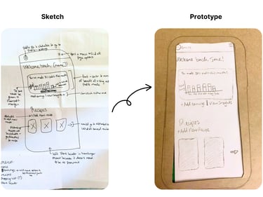 I first began sketching out my idea for the home screen on paper, and I translated that into a paper prototype.