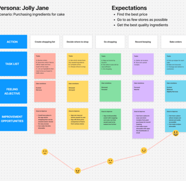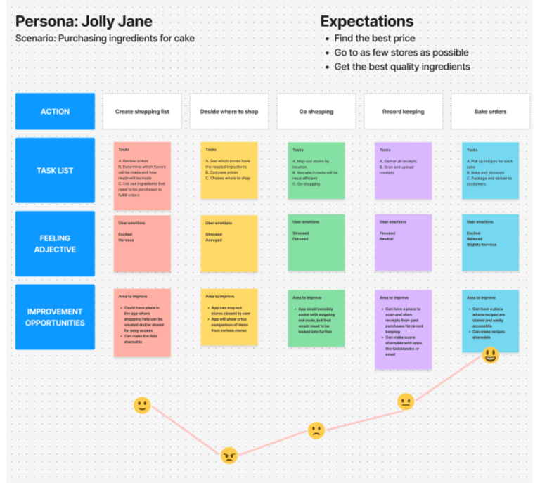To assist with visualizing the most needed features for the app, I created an empathy map and a user journey map for Jane, which helped me glean valuable insights.