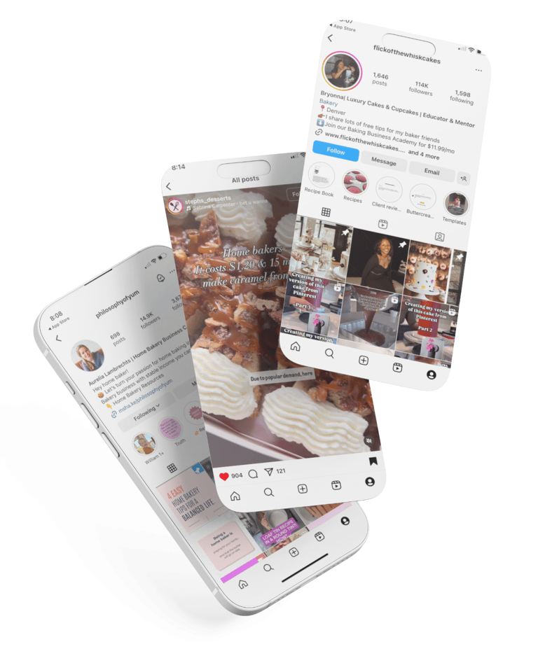 To better understand the needs of home bakers, I first began researching the life of home bakers and what their needs and pain points are. I followed multiple accounts on Instagram and read through posts on Facebook groups for home bakers to gain insight into the field.